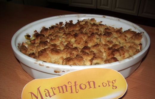 Ingrédients (pour 4 personnes) : - 500 g de rhubarbe (détaillée en tronçons) - 1 pomme - 90 g de beurre mou - 125 g de farine - 60 g de cassonade (ou sucre ) - 1 sachet de sucre vanillé Préparation de la recette : Malaxez avec les doigts la farine, le beurre et la cassonade. Lavez [...]