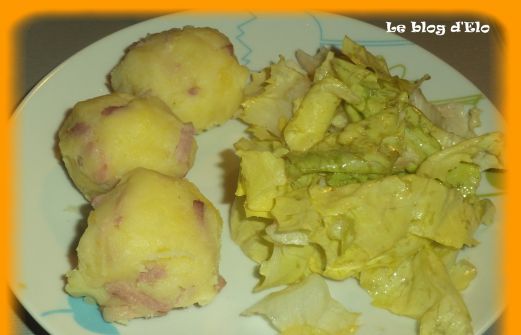 INGRÉDIENTS: des pommes de terre nouvelles 250 g de lardons une salade vinaigrette PRÉPARATION: Cuire les pommes de terre dans de l'eau environ 35-40 minutes. Puis les éplucher, les écraser avec les lardons revenus dans une poêle au préalable. Former des boulettes. Servir a [...]
