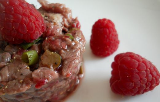 Je caressais depuis fort longtemps le projet d'un tartare de canard à la framboise. Lorsqu'en fouillant sur les Internets (sic) j'ai vu qu'il était monnaie courante d'y ajouter du poivre Sichuan, je n'ai pas pu faire autrement que de m'imaginer le merveilleux mélange de saveur [...]