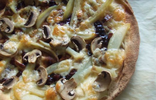 Un grand pita Du pickle Un reste de frites au four Des champignons tranchés Du Cheddar fort Un four chaud et une quinzaine de minutes On a presque une pizza brit'