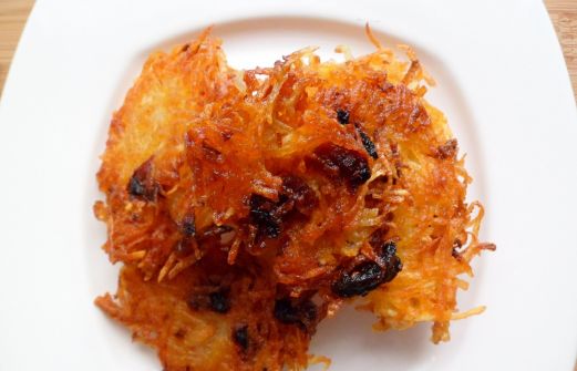 Les épices du chorizo colorent les galettes de pommes de terre râpées et développent toute leur puissance à la cuisson. Pour 4 papilles résistantes : 1 kg pommes de terre 1 oignon 125 g chorizo huile de friture Éplucher le chorizo et le placer au c [...]