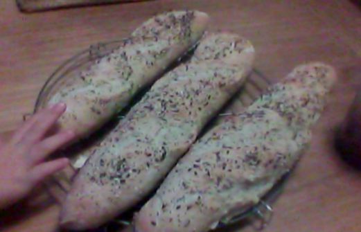 J ai refait des baguettes,mais avec des graines....alors beurre confiture, miel,thé ou café....à vos tartines!! Recette tirée du li vre 1000 et une pâtes...à pain Ingrédients: -300g d eau -25g de levure fraiche -500g de farine -1 càc de sel -3càs de mélanges de grain [...]