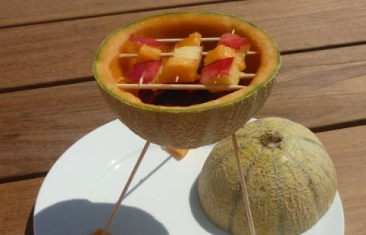 Des ingrédients simples : du melon, des cerises et différents fruits pour les brochettes... Le matériel ? Des grands piques et des p'tit piques !