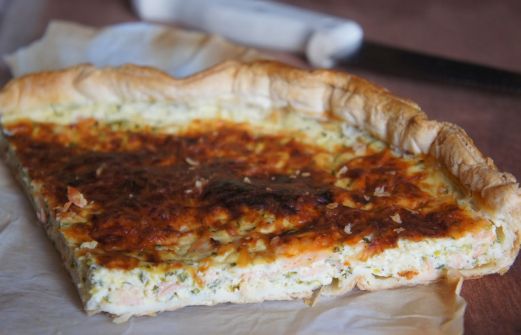 Pour hier soir, nous avons mangé une quiche mais avec du saumon fumé, des courgettes râpées et du St Môret à la place de la crème fraîche