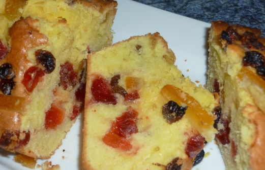 j'ai utilisé des cerises confites, orangettes, fraises confites, gingembre confit, citrons confits.