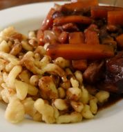 Je ne sais pas si c'est le temps frisquet qui me donne envie de longue cuisson, de repas consistant mais j'ai eu envie de cuisiner un classique, la tourtière. Une tourtière bien gourmande qui a mariné 36 heures dans le vin. Ingrédients 1 ½ livre de viande en cube (moitié por [...]