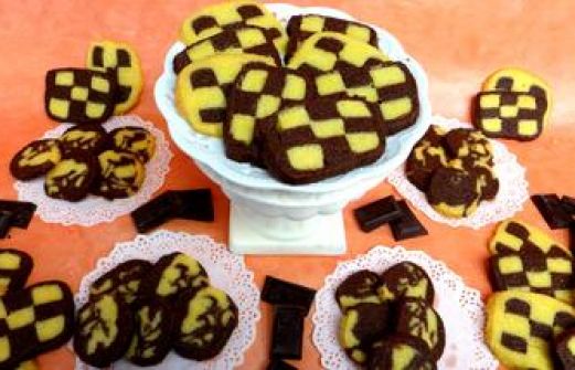 Ingrédients de la recette Recette pour 8 personnes Préchauffer le four, thermostat 8-9 (190°C) 10 à 12 min par fournée Préparation 1 Damiers - 1.1 Séparer les jaunes des blancs . Couper le beurre en dés. Dans le robot mélangeur, placer la farine, les oeufs, le sucre vanill [...]