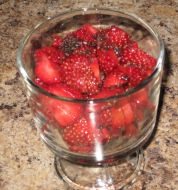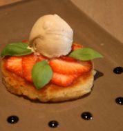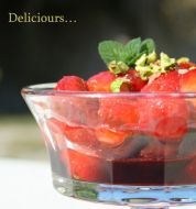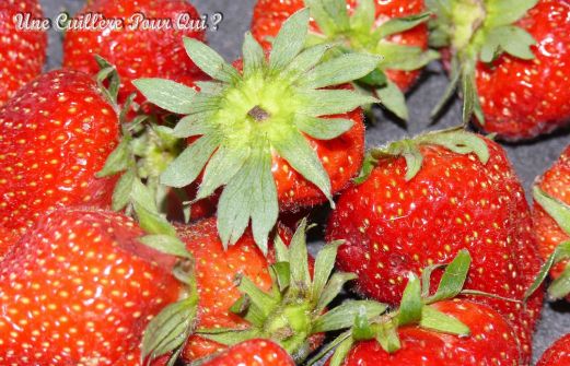Un petit coulis réalisé avec les fraises "à confiture" achetées chez le primeur... relevé d'une pointe de vinaigre balsamique.