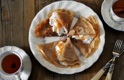 À la Chandeleur, l’hiver se meurt ou prend vigueur ! Pas trop froid ? Moi je saute des crêpes ! Aimerez-vous les crêpes de farine de châtaigne à la liqueur d’amandes ? Fourrez avec une couche de crème fraiche, saupoudrez de zestes d'orange. Cr [...]
