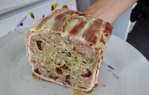 A la demande express de Mam'zelle Mélo, j'ai à nouveau réalisé une terrine. celle-ci était au poulet et au porc avec à nouveau des cranberries et des pistaches.
