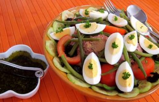 Ingrédients de la recette Recette pour 5 personnes Pour réaliser la salade niçoise 1 l d'eau (haricots verts) 1 l d'eau (oeufs) 6 g de gousses d'ail soit 2 470 g de concombre 110 g d'oignon 220 g de poivron vert 90 g d'olives noires de Nice 330 g tomates soit 2 280 g de thon [...]