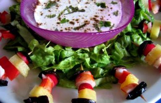 Ingrédients de la recette Recette pour 5 personnes Pour les brochettes de crudités 600 g d'eau (crevettes) 120 g de crevettes 3 g de sel 40 g de chèvre frais (sauce) 0,5 g de sel (1 pincée) 1 g de cinq épices 2 g de persil 0,5 g de poivre 150 g de yaourt nature 1 g de per [...]