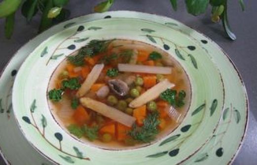 Ingrédients de la recette Recette pour 6 personnes Pour le minestrone 1,3 l d'eau 7 g de fond de veau 110 g de vin blan sec Tursan 120 g de tomate fraîche 15 g de sauce soja 2,2 g de sel fin 8 g de sucre semoule 400 g de petits pois 300 g de patates douces 140 g d'oignon f [...]