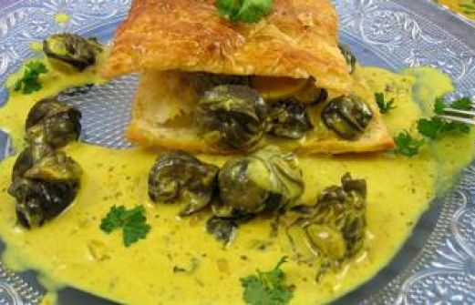 Ingrédients de la recette Recette pour 4 personnes Pour dorer 18 g de jaune d'oeuf 5 g d'eau 290 g de pâte feuilletée Préparation 1 Feuilleté d'escargots aux épices - 1.1 Préchauffons le four... Placer le thermostat entre 6 et 7 (200°C). Trier, laver le persil sous l'e [...]
