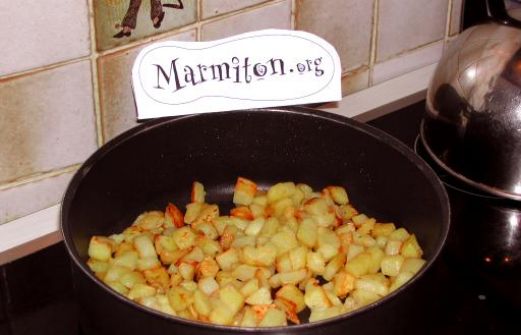 Ingrédients (pour 4 personnes) : - 6 pommes de terre à chair ferme - huile - sel et poivre - facultatif : 1 pincée de curry - sauteuse avec couvercle Préparation de la recette : Eplucher et laver les pommes de terre, puis les couper en tranches de 1,5 cm d'épaisseur, puis en cubes. Ne pl [...]