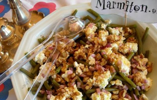 Ingrédients (pour 2 personnes) : - 300 g de haricots verts frais - 1 fromage de chèvre frais (100 g) - 20 g de cerneaux de noix (ou 1 boursin aux noix) - huile de noisettes (ou de noix) - sel, poivre du moulin - 1 échalote émincée Préparation de la recette : Cuire les haricots à la vapeu [...]