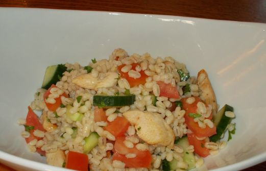Préparation: 15 minutes Réfrigération: 1 heure Portions: 4 Il te faut 2 tasses (500ml) poulet cuit coupé en dés 2 tasses (500ml) orge mondé cuit 1 c.à thé (5ml) cumin moulu ½ c.à thé (2ml) coriandre moulue (moi pas mis) 2 tomates de taille moyenne, épépinées et coupées en petits [...]