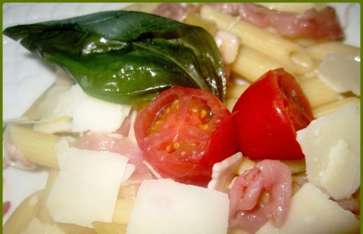 Bonjour à tous et toutes, en ce début de semaine je vous propose une salade repas bien fraîche qui ravira les amateurs de saveurs ensoleillées. L'Italie dans votre assiette avec cette salade! * Penne rigate * Tranches de jambon cru * Tomates cerises * Copeaux de parmesan * Basilic * Huile d'oli [...]