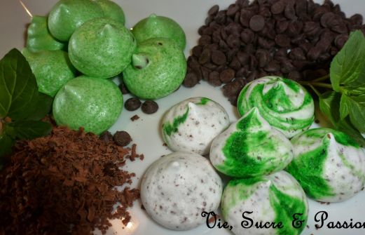 Nouvelle saveur de meringues à l'étude aujourd'hui: Menthe & Chocolat. 2 techniques testées. Dans les 2 cas j'ai tout d'abord préparé ma recette de base . Extrait de menthe poivrée et de menthe Une fois la meringue ferme et brillante, j'y ai ajouté ½ c. à thé d'extr [...]