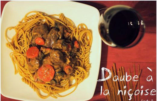 Vous connaissez la daube? Cette viande doucement mijotée en cocotte, qui embaume la cuisine pendant tout l'après-midi... Quel délice! Il existe plusieurs versions de cette viande mijotée, le boeuf bourguignon en est proche... mais celle que j'ai décidé de présenter aujourd'hui est la daube niço [...]