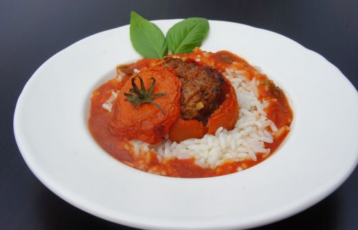 J'ai cuisiné des tomates farcies au boeuf mais en utilisant très peu de chair à saucisses car chez moi, ils trouvent que c'est trop gras