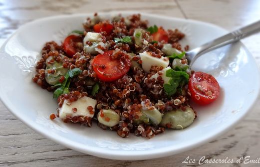 Ingrédients pour 4 personnes en plat principal: 2 verre de quinoa rouge* 2 kg de fèves (poids non décortiquées) 1 kg de tomates cerise 200g de mozzarella Persil frais Pour la sauce: 1 cuill. à soupe de miel 2 cuill. à soupe de vinaigre balsamique 1 cuill. [...]