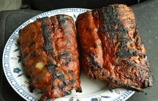 5 livres côtes levées de porc 2 pots de sauce B.B.Q Mettre les côtes levées dans un plat en aluminium allant au four. Ajouter de l'eau à environ la moitié du plat. Recouvrir de papier aluminium. Faire cuire à 350°F pendant 2 h ou jusqu'à la viande se détache facilement de l'os. Reti [...]