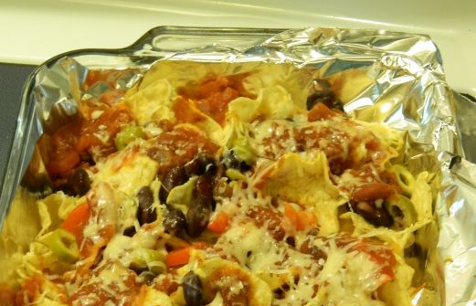 1 sac de 300 g de Tostitos style restaurant 1/2 tasse de petits dés de poivron rouge 1/2 tasse d’olives vertes dénoyautées, coupées en rondelles minces 1 1/4 tasse de fromage mozzarella râpé 1/2 tasse de Sauce salsa Tapisser une grande plaque à biscuits avec la moitié des Tostito [...]