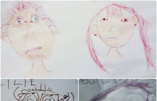 Le dessin du haut est celui de ma grande : 8 ans et ceux du bas : la petite 4ans....