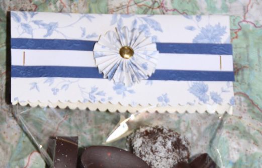 Un petit quelque chose pour réconforter une amie en souffrance. J'ai placé des chocolats et des cake balls fait maison dans un sachet (récup emballage alimentaire).Pour maintenir joliment un peu de scrap. Pour les intéressées : la recette des "cake balls" : Mixer un reste de cake (ici cake au l [...]