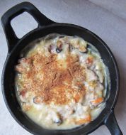 Il y a des plats que fait Mamaman et que je rate conscieusement à chaque fois que je m'y frotte. Pour ce gratin de fruits de mer c'est le cas. Du moins jusqu'à cette fois. C'est pas d'un esthétisme de fou, mais c'est bon. Ingrédients :