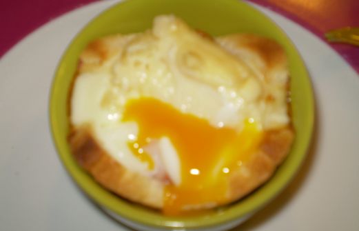 Ingrédients pour 4 personnes 4 oeufs 4 tranches de pain de mie 4 tranches fines de lard 80g de comté Préparation préchauffer le four à 200° Mettre des tranches de pain de mis dans le fond de petit moule . Mettre par dessus les tranches de lard co [...]