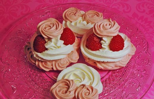 Douceurs très girly ! Pour 6 pièces 2 blancs 100g de sucre 1cs de farine arôme framboise colorant rouge 20 cl de crème liquide 2cs de sucre pour la chantilly 1 barquette de framboises Au robot ou aux batteurs, commencer à monter les blancs et rajouter petit [...]
