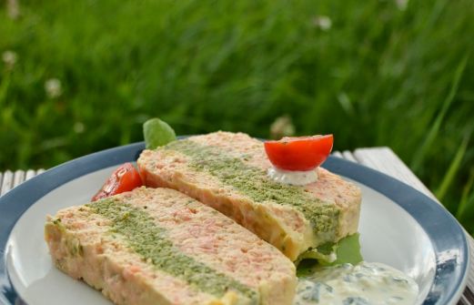 Terrine de saumon et de vert de bettes Une terrine de poisson bicolore pour une entrée fraîcheur. Ingrédients (pour 10 personnes) : Terrine : - 800 g de filets de saumon - 5 feuilles de bettes - 3 oeufs - 40 cl de crème fraîche épaisse - quelques brins de ciboulette et d'aneth - sel - p [...]