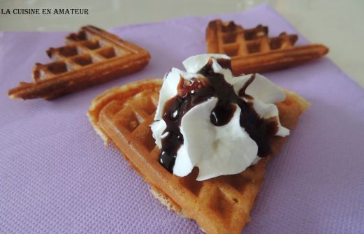 Gaufres lyonnaises Des gaufres, des gaufres oui mais des gaufres lalalala. Recette prise sur le livret du gaufrier, du moins mon vieux gaufrier qui a pris feu il y a quelques temps hi hi Avec les doses données et la taille de mon gaufrier, j'ai eu 50 gaufres. Pas de repos. [...]