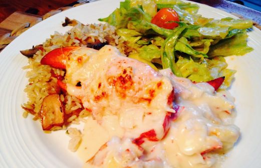 Voici un festin concocté par mon amie Éli et moi il y a quelques jours. Profitez-en pendant que le homard est encore à bon prix :). Vous pouvez choisir d'utiliser les demi-carapaces de homard comme récipient pour la cuisson au four, ce qui donne une plus belle présentation, ou encore utiliser d [...]