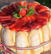 Pour une mini charlotte, tremper 5 boudoirs dans le jus et les disposer l'un à coté [...]