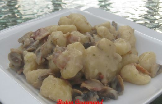 A la maison, on adore les pâtes. Quand je fais des gnocchis, normalement je les sers avec de la sauce rosée. J'ai trouvé cette recette-ci par hasard en fouinant dans le section 30 minutes de Ricardo. Très bon. À refaire assurément!!! Par contre, je remplacerais par un fromage plus goûteux.