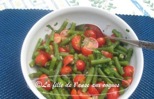 J'ai des petites tomates à ne plus savoir quoi en faire. J'ai révisé mes classiques qui en contiennent pour pouvoir les utiliser. Dans tout ce que je peux en ajouter, je le fais. Et il m'en reste encore, et encore... Cette dernière salade m'a été inspirée simplement par les haricots verts qui s [...]