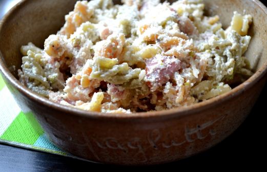 Je n'ai pas souvent d'idées pour cuisiner les pâtes, je reviens souvent aux bolognaise, carbonara,... C'est avec beaucoup de curiosité que nous avons essayé cette recette de pâtes dénichée dans un livre de cuisine. pour 4 personnes Pâtes au choix, type fusilli 70g de pistaches [...]