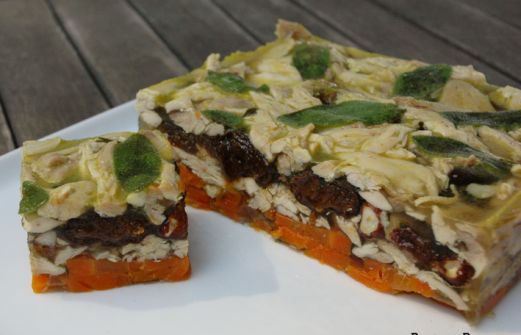 À cuisiner impérativement la veille. Cette terrine est idéale pour les buffets. Pour changer, je l’ai préparé dans un moule chemisé avec du film transparent et divisé les ingrédients par deux (sauf la carotte, le bouquet garni et le cube de volaille). Pour 6/8 personnes 1 [...]
