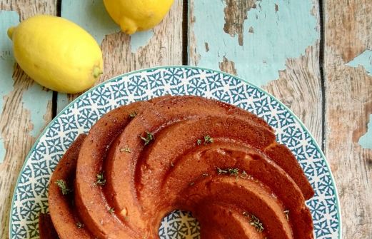 Cette recette je l'ai trouvée sur le nouveau livre de Nigella Lawson, " Simply Nigella" . Pour tout avouer, Nigella proposait ce gâteau dans le même moule que celui-ci et c'est cela tout d'abord qui a retenu mon attention...Puis les simples mots citron et thym ont aiguisé ma gourmandise...