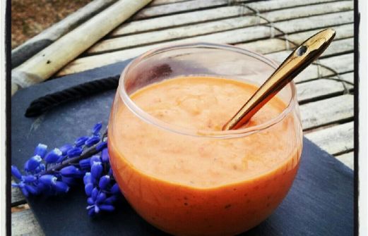 Soit en verrine soit en accompagnement de pates ou en apéro pour faire des ptits toasts..c'était très bon :-):-) 1/4 de tofu soyeux 1/2 concentré de tomates 200 g de poivrons vert rouge jaune sel poivre basilic et du tabsco pour relever le gout. j'ai d'abord mixé le tofu avec le concentr [...]