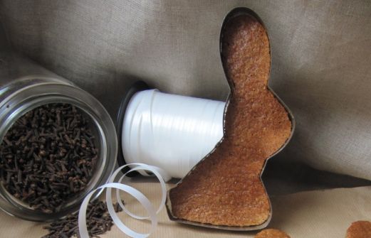 La symbolique du lapin est la même que celle de l'oeuf : comme le Christ ressuscité sort de son tombeau, le lapin quitte son terrier. Ici, les lapins sont en pain d'épice mais peuvent se réaliser en pâte à pain au lait ou en pâte sablée.