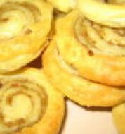 - 1 pâte feuilletée - 4 knacki - 50 g de fromage râpé - 1 oeuf - 1 CS de ketchup - Sel - Poivre