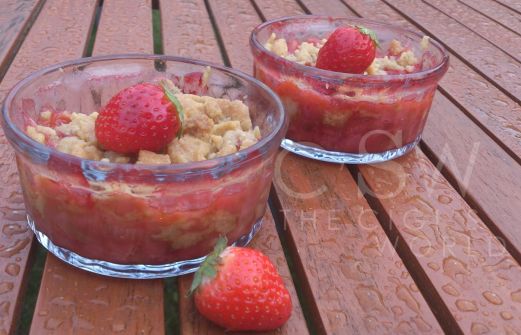 Rhubarbe et fraise, un mélange parfait. Doux, bien sucré et encore tiède c'est encore un bonheur.
