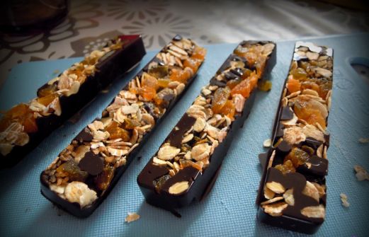 Flocons d'avoines Environ 4 à 5 abricots sec 125g de chocolat noir Coupez les abricots sec en petit dés, et répartissez les dans les moules, versez les flocons d'avoines au dessus. Faites fondre 125g de chocolat noir au bain marie. Une fois fondue, répartissez le chocolat da [...]
