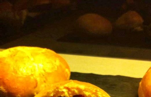 Ingredient: Pour 8 bun's: Pâte briochée : - 400 g de farine - 1 oeuf battu - 210 ml de lait tiède - 1 sachet de levure déshydratée de boulanger - 1,5 c a cafe de sel - 60 gr de beurre mou en morceaux Garniture : 4 tranches de jambon blanc coupée en petit des 1 boule [...]