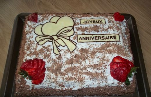 J'ai réalisé le gâteau d'anniversaire de ma belle-maman avec ma belle-sœur. On a fait sa recette de forêt noire en remplaçant les cerises par des fraises. Merci Tous en cuisine