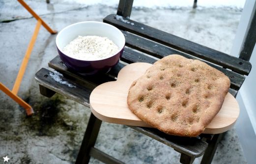 Un accompagnement sympathique à une bonne fougasse (on a aussi mangé une soupe de potimarron avec un peu crème de coco et une petite salade graines d'alfalfa germées et carottes lacto-fermentées sauce huile de sésame et vinaigre d'umeboshi)...